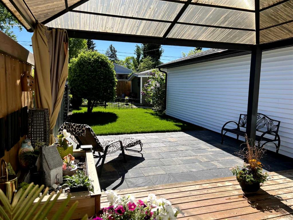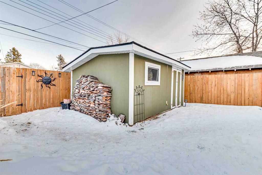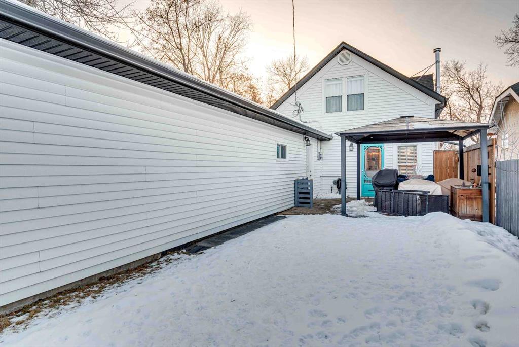 Welcome to this charming 1½-storey character home with fantastic curb appeal ideally located close to schools and downtown Three Hills. Bursting with warmth and personality, this home has seen many thoughtful updates over the past 10 years, including roof, eavestroughs, vinyl windows, furnace, hot water tanks, upgraded electrical panel, and a beautifully renovated kitchen featuring quartz countertops and modern appliances. The main floor offers a comfortable living room, dining area with wood stove, updated kitchen, and a versatile flex room, along with a fully renovated bathroom with an accessible shower. Wide, wheelchair-accessible doorways throughout the main floor add to the home’s functionality without compromising its character. Upstairs, you’ll find three bedrooms, original wood floors, plus a 4-piece bathroom with convenient upper-level laundry. The former garage has been converted into an independent living area with two separate access points from the backyard—ideal for extended family, guests, or creative use. Step outside to a magnificent backyard designed for relaxation, complete with a pergola and additional storage shed. This unique property blends classic charm, modern updates, and flexible living spaces in a prime location.